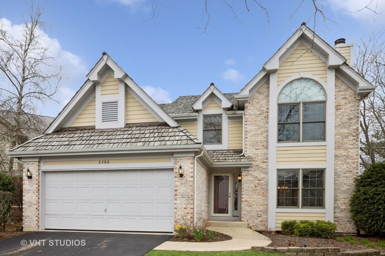 COME LIVE THE GOOD LIFE! You'll love everything about this maintenance-free Stonebridge beauty tucked in the back of a quiet cul-de-sac and superbly positioned on a gorgeous pond. The tranquil water views and the soothing sounds will melt your stress away. All the mature trees and the professionally landscaped front, side and back yards frame the pond beautifully and are the perfect backdrop to this well maintained home. Where's the best spot to enjoy these views? From the oversized cedar deck, of course! It's just the right place to enjoy your morning coffee, read a good book, or host a more elaborate outdoor party. No matter how you spend time here, it's a space you won't want to leave. Step inside and you'll see that this home's interior is just as impressive as the exterior. The versatile floor plan lives large and it has all the right spaces. Relish in the homes fine intrinsic details including rich hardwood floors, thick crown moldings, built-in bookshelves, vaulted ceilings, and TWO gas log fireplaces. The kitchen boasts loads of cabinets with pull-out drawers, solid surface corian counter tops, instant hot water, trash compactor, spacious eating area and a double pantry. It flows easily into the vaulted the family room with oversized windows to the private back yard and pond. The sunken formal living room with built-in book shelves and the formal dining room are wonderful entertaining spaces and nicely round out the first floor. Upstairs you'll find two nice-sized bedrooms, each with its own full bathroom for privacy and convenience. The primary suite is very impressive with its dramatic vaulted ceiling, TWO walk-in closets, and spa-like bath with whirlpool garden tub, separate shower and double bowl vanity. The second bedroom also has two closets. In fact, the closet/storage space (including a catch-all Murphy's closet near the family room) throughout this home is amazing! The second floor loft with built-in book cases is gigantic and makes the perfect home office. Or, it could easily be converted to a 3rd bedroom. It sits adjacent to the convenient 2nd floor laundry room. The unfinished basement awaits your finishing ideas. This house is sturdy! It was built with 2x6 framing, and extra insulation was added during construction. It's also been EXTREMELY well maintained by the original owners. All the windows were replaced in 2010. The cedar shake roof was replaced in 2014 and gutter guards were installed in 2021. Newer appliances were added in 2014/2015. The furnace and a/c were replaced in 2015 and the water heater was replaced in 2024. The Lakeside neighborhood of Stonebridge is a maintenance-free community where all the lawn care and snow removal are done for you. They turn the in-ground sprinkler system on in the spring and shut it down in the fall. They trim the bushes, mulch the front yard, and even seal coat the driveway for you! It's serviced by highly acclaimed District 204 schools. Brooks Elementary and Granger Middle School a